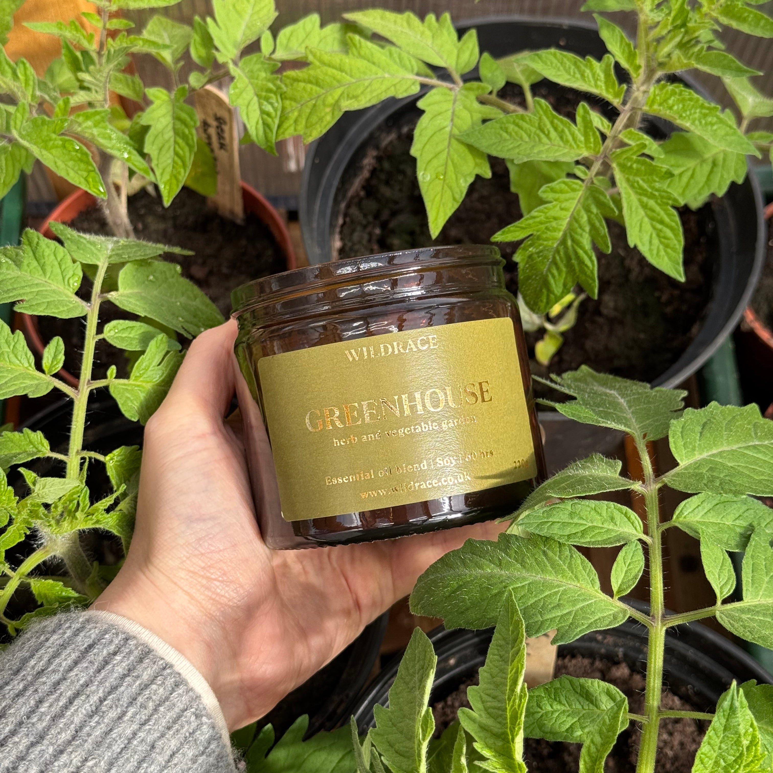 Step into the calm of a sun-warmed greenhouse with this plant-powered essential oil candle, crafted entirely by hand in small batches. The greenhouse candle is part of our exclusive Wildrace blend - earthy, herbal, and vibrant. designed to capture the true essence of nature under glass. Think roots in soil, bright green leaves warmed by sunlight, and the refreshing scent of an herb garden in full bloom.